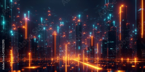 © photolas, Fototapeta premium Neon Lights Illuminate a Futuristic Skyline at Dusk in a Modern Cityscape