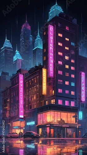 Obraz premium Neon lights illuminate a vibrant cityscape at night, creating a stunning...