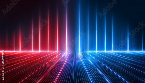 Fototapeta premium Neon lights. Light colorful blue and red neon lights over dark background