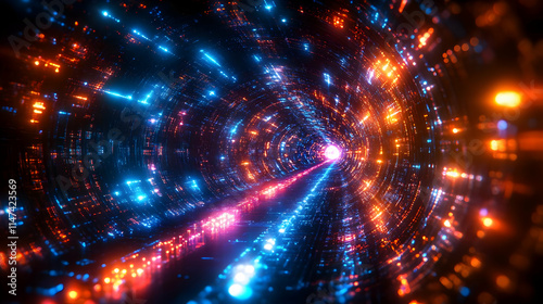 Naklejka premium Neon Lights Tunnel: Abstract Digital Art