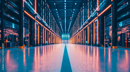 Fototapeta premium Neon-lit Data Center Corridor