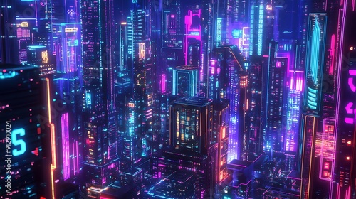 Obraz premium Neon-Lit Futuristic Cityscape with Glowing Towers