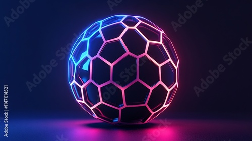 © tono boys, Fototapeta premium Neon-lit hexagonal sphere, glowing in dark background.