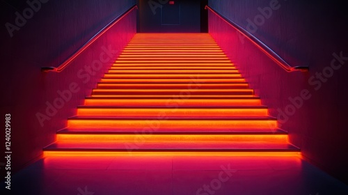 Fototapeta premium Neon-lit stairs, hallway, exit, vibrant, modern, interior design