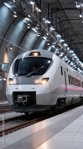 © lililia, Naklejka premium Neon-lit train glides through a modern tunnel, featuring vibrant colors and a sense of speed in a high-resolution capture