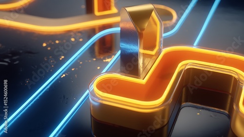 © mela, Fototapeta premium Neon maze with reflective surface
