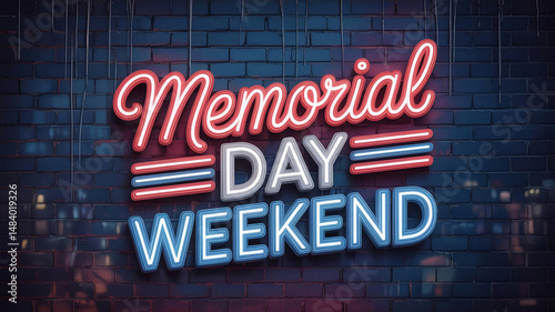 Obraz premium Neon Memorial Day Weekend Typography for Social Media