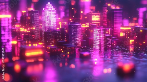© 1013, Fototapeta premium Neon Metropolis: A Cyberpunk Cityscape at Night
