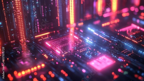 Obraz premium Neon Metropolis: A Cyberpunk Dream Realized in Glowing Circuits and Towering...