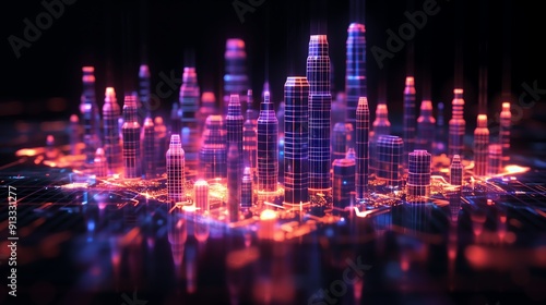 © Kasiwat, Fototapeta premium Neon Metropolis futuristic cityscape illuminated