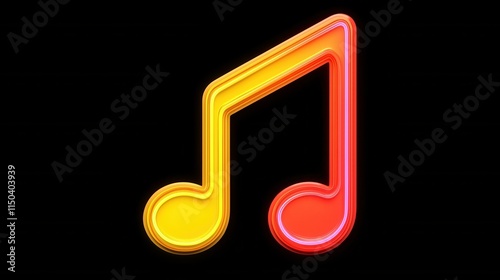 © Flowaiart, Obraz premium Neon Music Note Icon on Black Background for Creative Projects