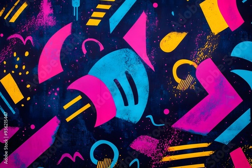 © Lake Stylez, Fototapeta premium Neon-Muster im 1980er-Jahre-Stil mit lebendigen Farben