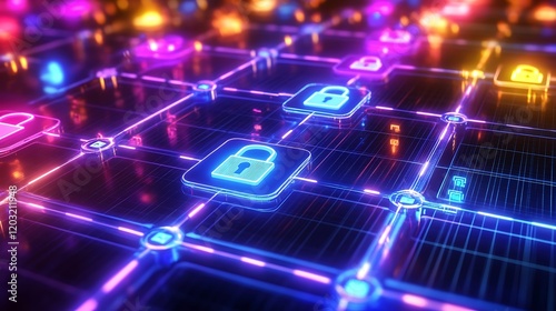 Obraz premium Neon Network Security Concept