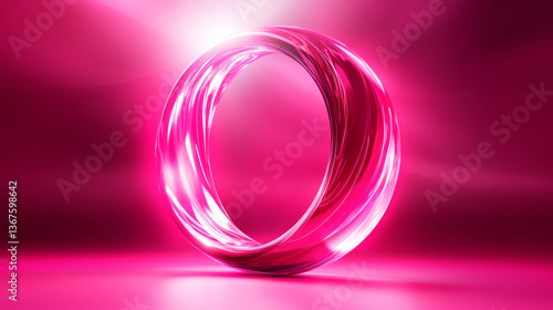 © ImageKing, Obraz premium Neon optical halo flares with light glow vector effect. Circle energy flare glow abstract frame with 3d shine. Digital fantasy portal swirl shape illustration. Beautiful pink sphere twist element