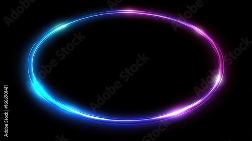 © ely, Obraz premium Neon Oval Frame on Black Background for Digital Design and Visual Projects