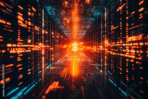 Fototapeta premium Neon pathways illuminate a digital realm filled with vibrant data streams....