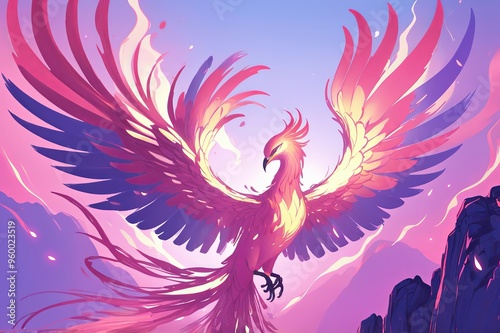 © Fuljan, Fototapeta premium Neon Phoenix ink brushstroke painting illustration. Made with generative AI technology