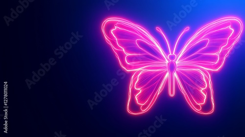 © abror, Fototapeta premium Neon Pink Butterfly Glowing Dark Background