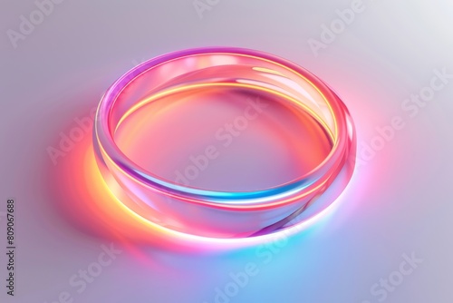 © Dina, Obraz premium neon pink holographic glowing round ring 3d isolated on white surface