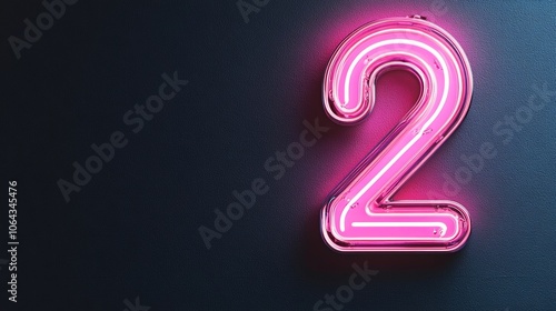 Naklejka premium Neon pink number two on dark background