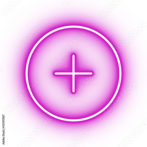 Obraz premium Neon pink plus icon, glowing add button icon on transparent background