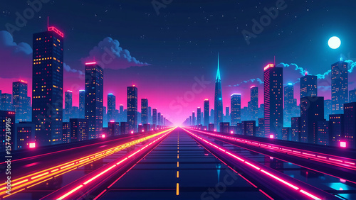 © PSingh, Fototapeta premium Neon Pixelated Cyber City Background