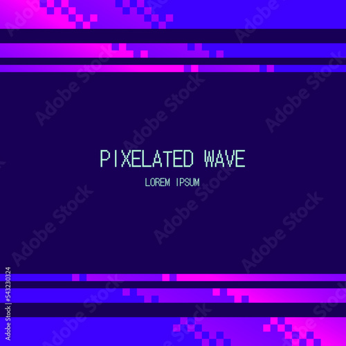 © marisamanee, Fototapeta premium Neon Pixelated Gradient Fading Line Frame, Glowing Pink with Blue Background