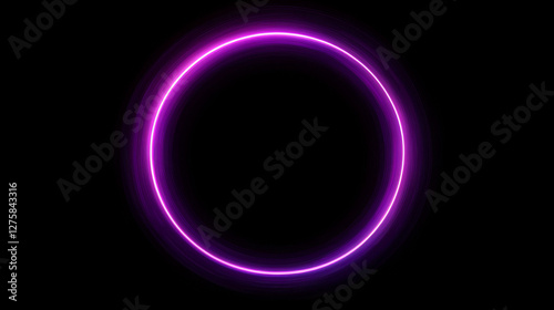© Nari, Obraz premium Neon planet ring with light glow energy effect. Magic cosmos round line flare with purple speed trail path shine element. Luminous motion circular disk shape abstract vector technology wallpaper.
