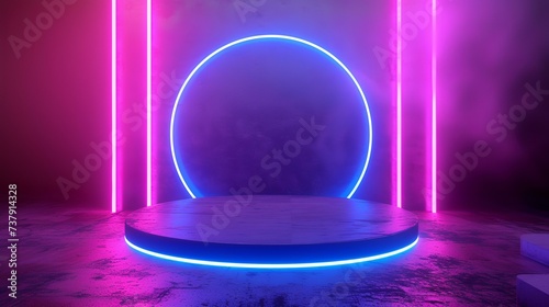© shameem, Obraz premium Neon premium product display podium on neon colorful background