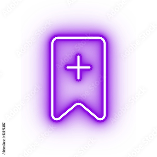 Obraz premium Neon purple bookmark icon, glowing add bookmark icon on transparent background