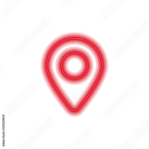 Fototapeta premium Neon red pin icon glowing with light. design features a circle and pin shape, shining brightly.