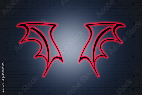 Obraz premium neon red wings on a brick wall background