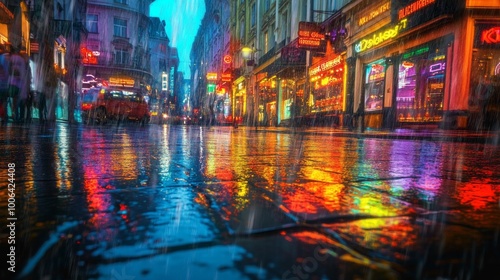 © Kopgz-41, Fototapeta premium Neon Reflections: A City Drenched in Color