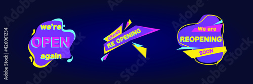 © Viktorija, Fototapeta premium Neon reopening banner on blue background