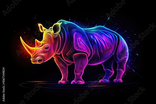 Fototapeta premium Neon Rhino on Black Surface