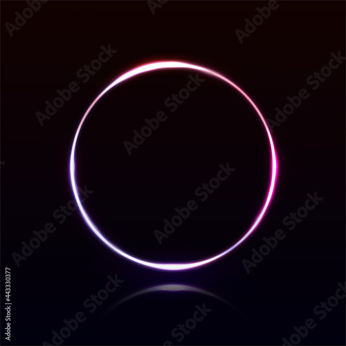 © Tuba Reza, Obraz premium Neon round frame with shining effects on dark background. Empty glowing techno backdrop. Vector illustration