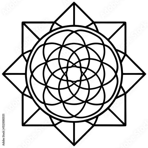 © Bipul, Fototapeta premium Neon Sacred Geometry Mandala on White