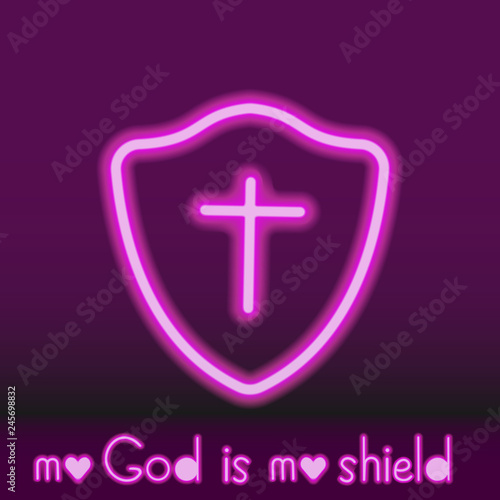 Obraz premium Neon shield with a cross. The biblical inscription "My God is my shield."
