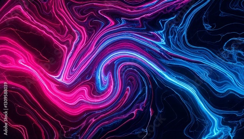 Fototapeta premium Neon Sign Marble background with glowing neon pink-blue swirls on black.