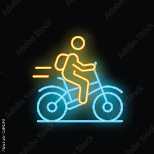 Fototapeta premium Neon sign of a student riding a bicycle with a backpack, symbolizing active...