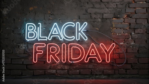 © Salma, Fototapeta premium Neon sign spelling black friday on brick wall
