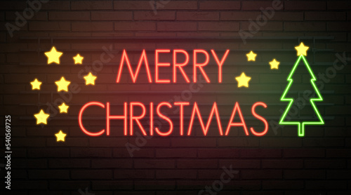 Obraz premium neon sign with message MERRY CHRISTMAS in front of a brick wall