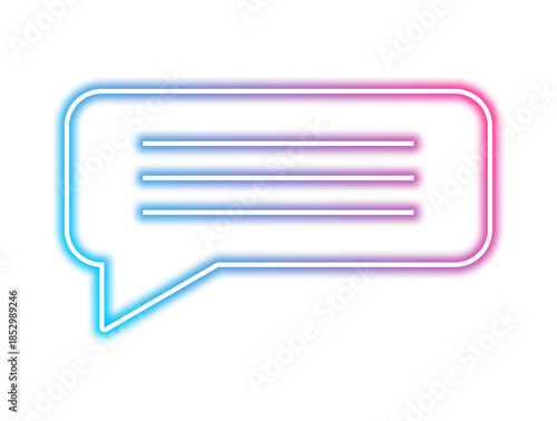 Fototapeta premium Neon Speech Bubble Icon with Blue and Pink Gradient Lights