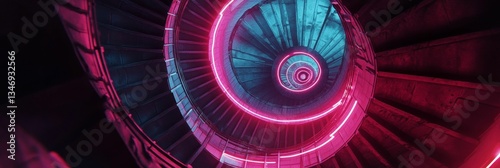 © jambulart, Fototapeta premium Neon spiral staircase abstract architectural perspective.