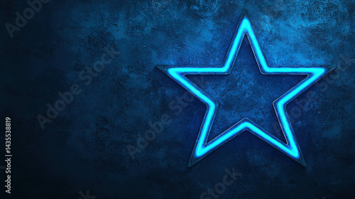Fototapeta premium Neon Star Glowing on Textured Blue Background for Creative and Modern Designs