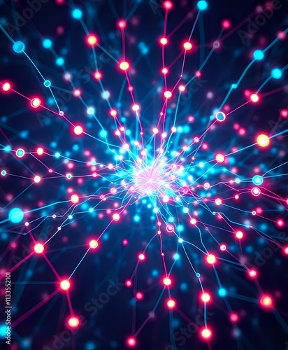 © Taria Technology, Fototapeta premium Neon Star Network - Abstract Blue Pink Connections in Square Crop (4:5)