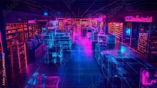 © wiwat apisithpinyo, Obraz premium Neon Store Interior.