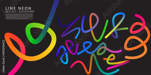 © Arina Color, Naklejka premium Neon style colorful wave shapes on dark background, ideal for trendy posters, backgrounds, or branding.