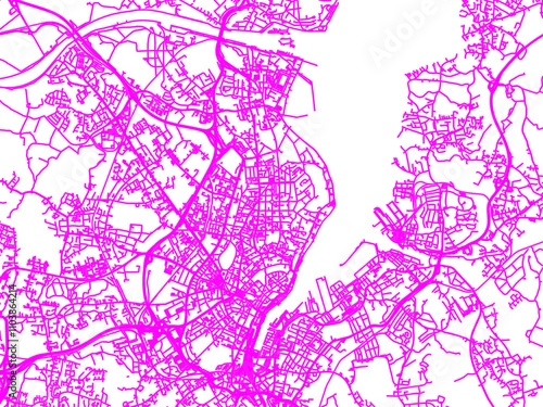 Fototapeta premium Neon Style Road Map overlay of Kiel, Germany in in Bright Pink.