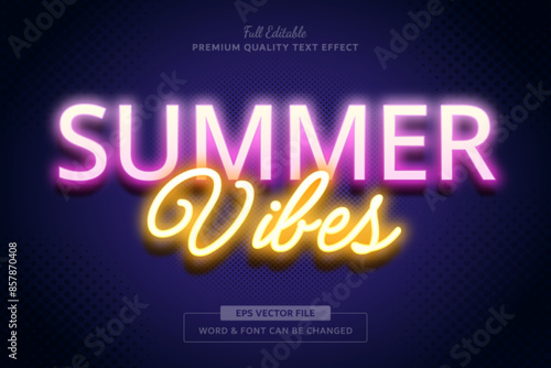 Obraz premium Neon Summer Vibes Editable Text Effect Font Style